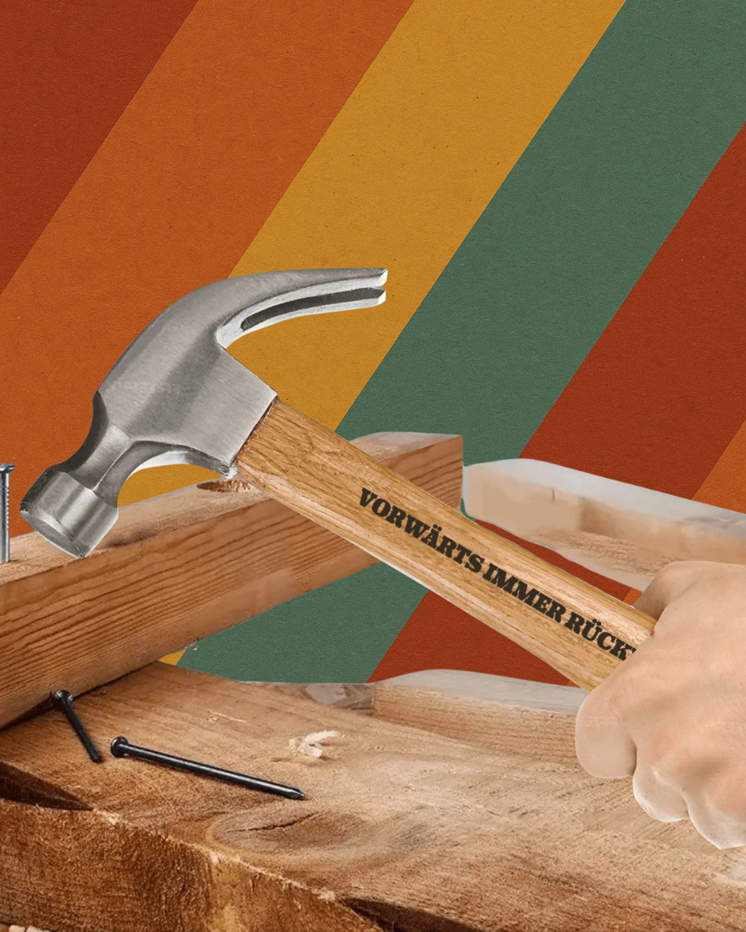 Wo gehobelt wird, da fallen Späne – und wo genagelt wird, braucht man diesen Hammer. Ein massives Werkzeug für echte Männer, Väter und Hobby-Handwerker.