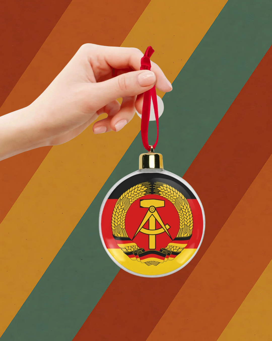 Diese Weihnachtskugeln bringen echtes DDR-Flair an deinen Tannenbaum. Jede Kugel zeigt beidseitig das originale Staatswappen der DDR in klarer Druckqualität und weckt Erinnerungen an die Weihnachtszeit, wie viele sie aus ihrer Kindheit kennen. Die bruchsichere Kunststoffkugel ist leicht, stabil und sofort einsatzbereit – einfach auspacken und aufhängen.