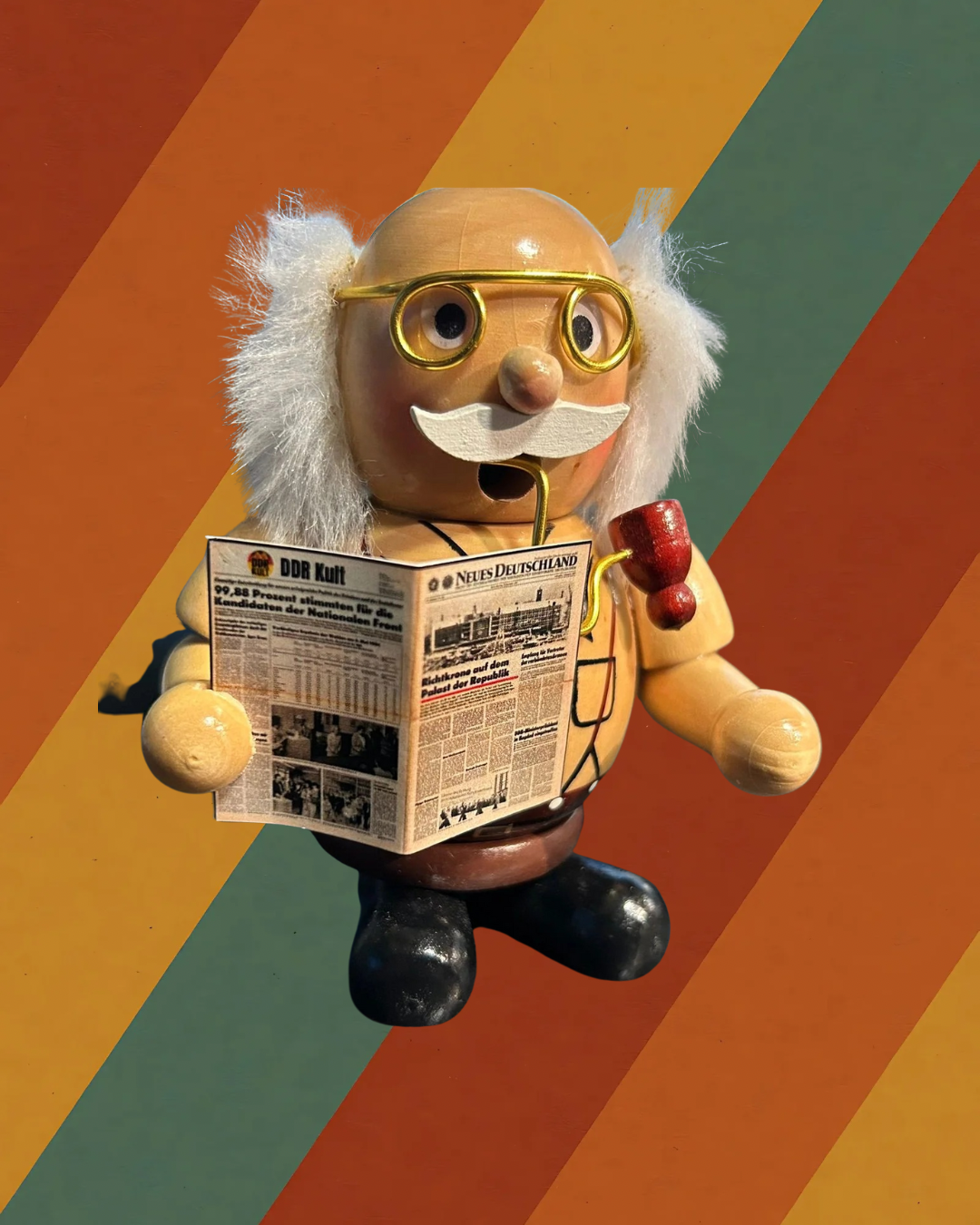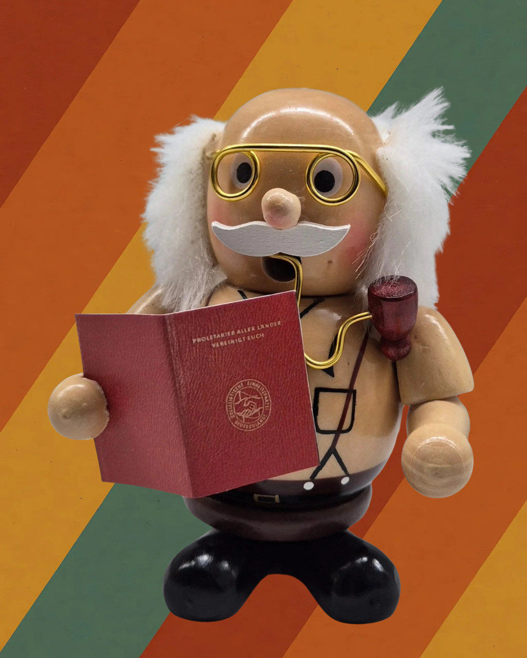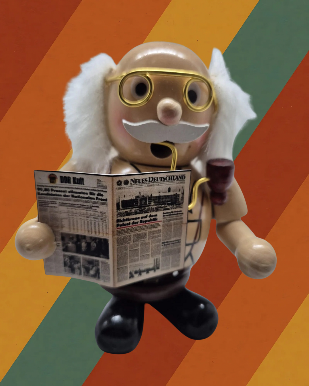 Es gibt zwei Varianten dieses Räuchermanns. In der ersten Variante hält Erich die Zeitung Neues Deutschland so als würde er die Meldungen der Republik vortragen. In der zweiten Variante hält er das rote SED Parteibuch das als Symbol der Parteiführung sofort wiedererkennbar ist. Beide Versionen machen die kleine Holzfigur zu einem einzigartigen Ostalgie Sammlerstück.