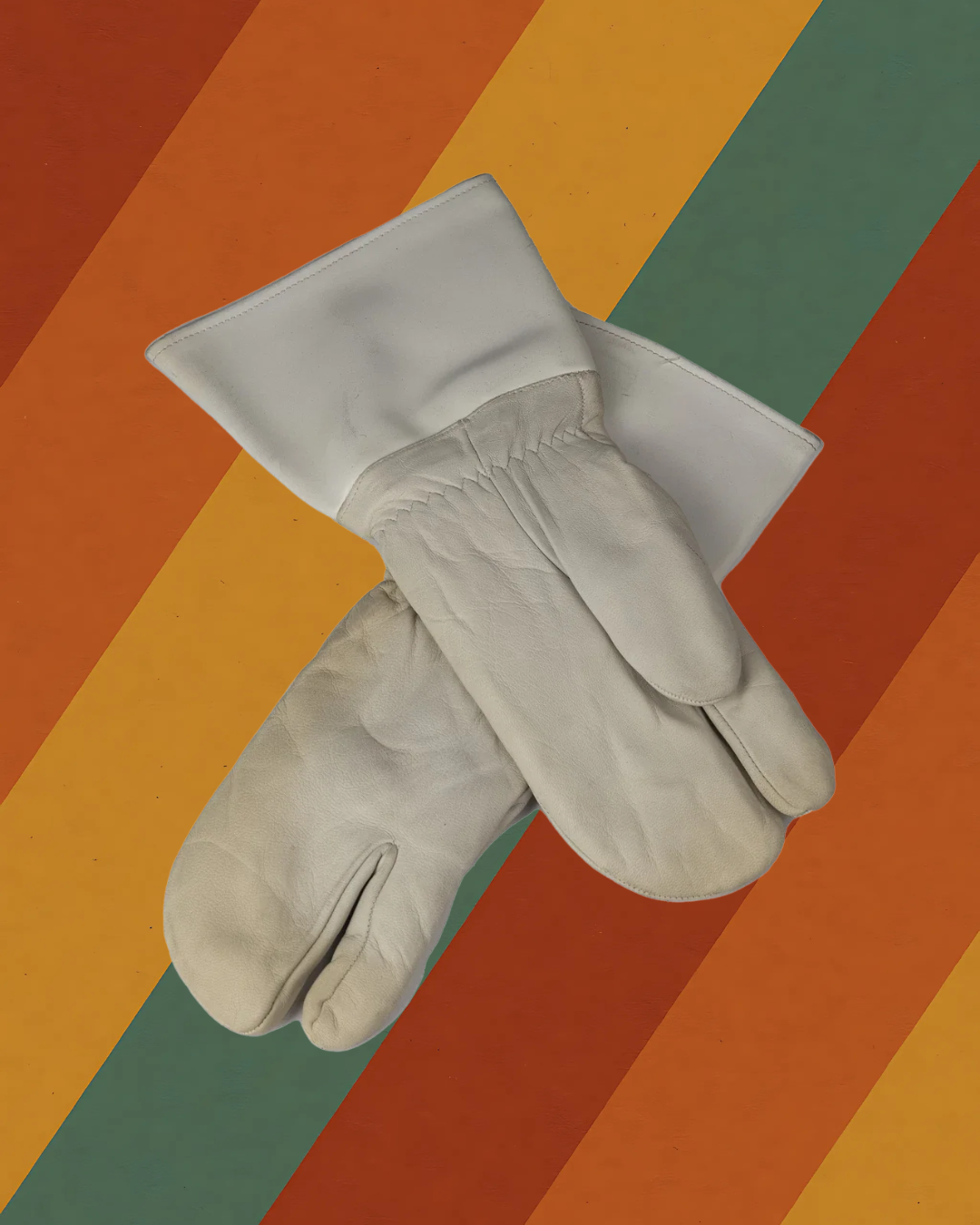 Ein seltenes Sammlerstück aus der DDR: Originale NVA Fäustlinge aus weißem Leder, wie sie von Reglern und Verkehrsposten getragen wurden. Das markante Zwei-Finger-Design war speziell für den Einsatz im Außendienst entwickelt und bot Schutz sowie Bewegungsfreiheit zugleich.