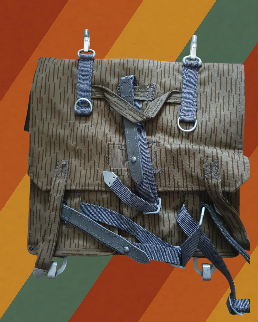 Ein Klassiker aus den Beständen der Nationalen Volksarmee: Das originale Sturmgepäck mit Tragegestell. In der DDR war es ein unverzichtbarer Ausrüstungsgegenstand – robust, praktisch und vielseitig. Mit dem markanten Y-Tragegestell konnte es als Rucksack oder wie eine Tasche am Tragegurt getragen werden. Dank der seitlichen Schnallen ließ es sich zudem mit dem Gürteltragegestell kombinieren.