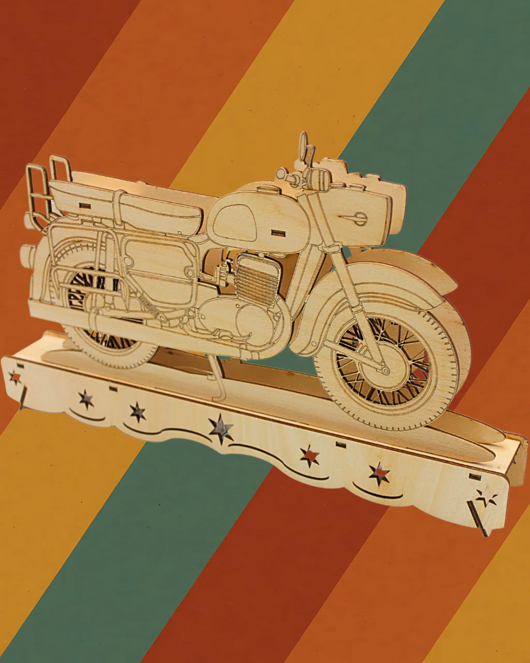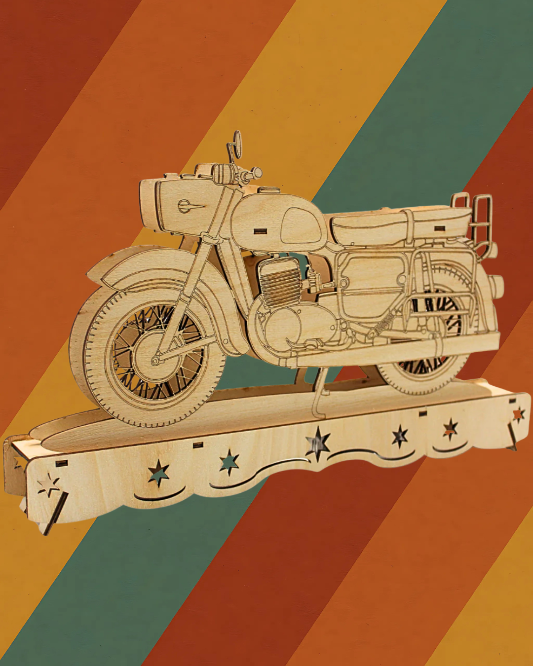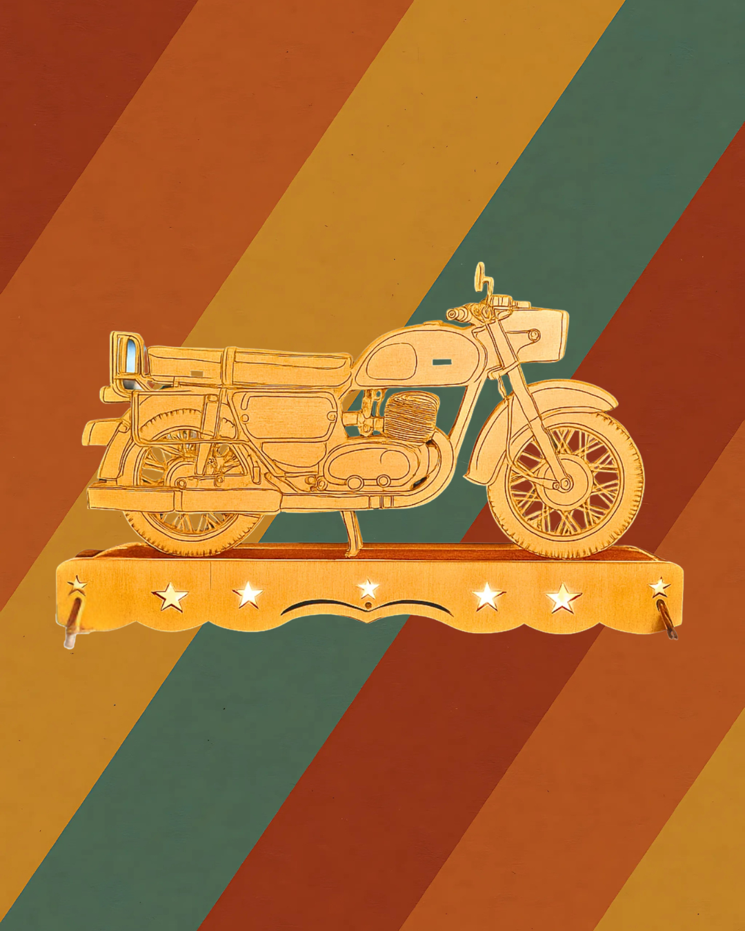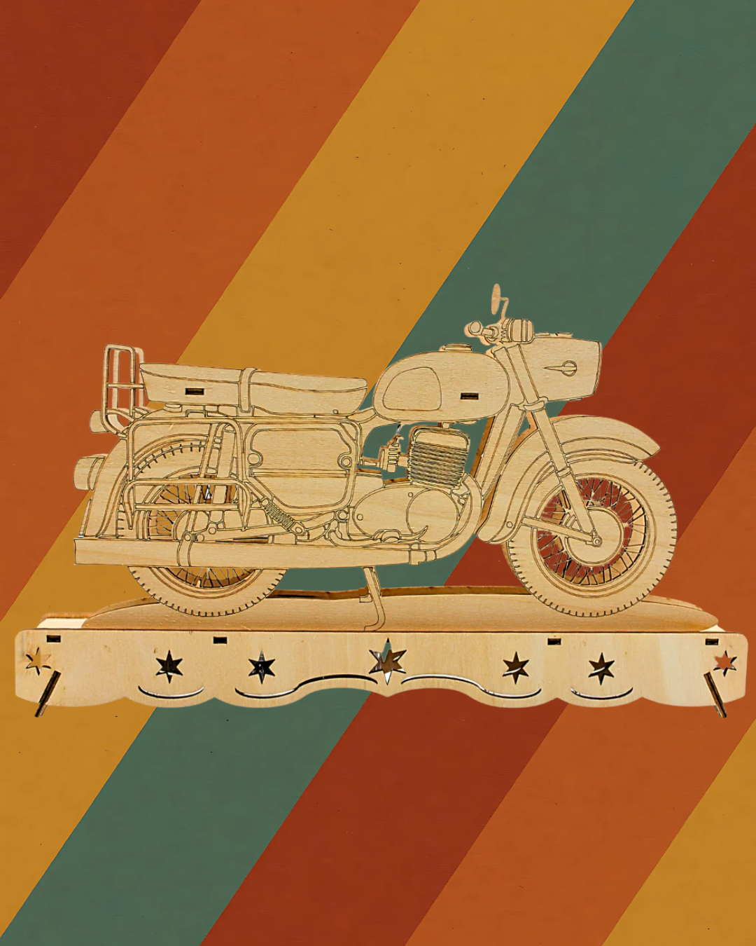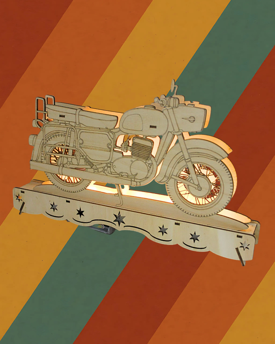 Der Ostalgie Schwibbogen „MZ ES 250“ zeigt eines der stärksten und beliebtesten Motorräder der DDR im detailreichen Holzdesign. Die MZ ETZ 250 war ein Symbol für Kraft, Ausdauer und typische DDR-Ingenieurskunst. In dieser liebevoll gefertigten Version wird sie durch warmweißes LED-Licht stimmungsvoll in Szene gesetzt und schafft eine nostalgische Atmosphäre.