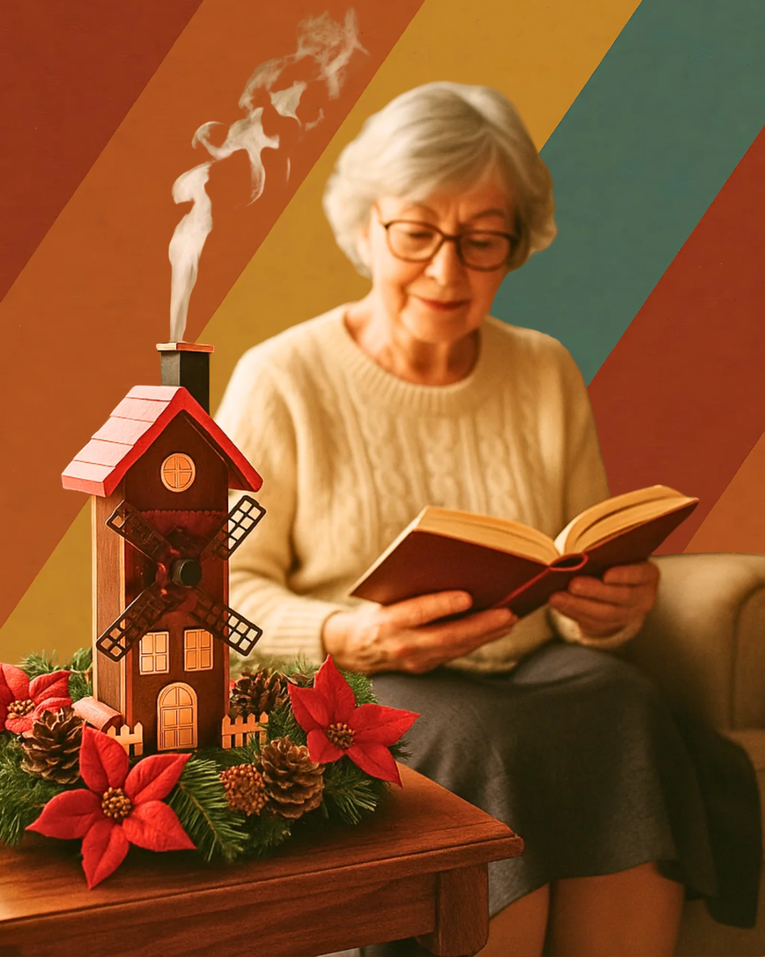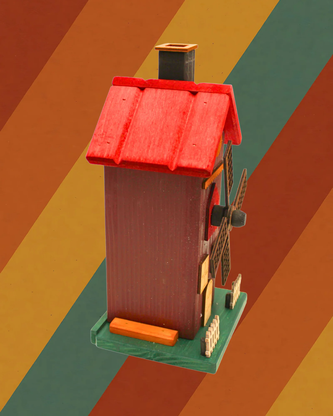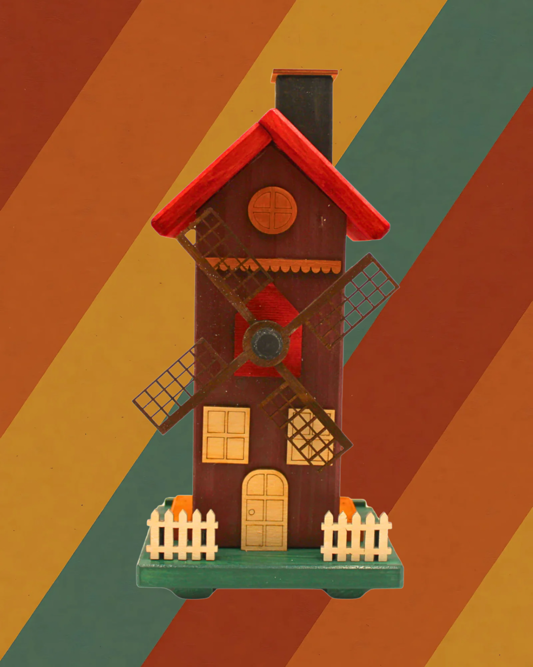 Das hohe Mühlenhaus mit drehbaren Flügeln, der kleinen Umzäunung und den handbemalten Details ist ein echter Blickfang. Beim Räuchern steigt der Duft sanft aus dem Schornstein auf und erzeugt eine gemütliche, ruhige Stimmung – perfekt für Wohnzimmer, Fensterbank oder den Adventstisch.