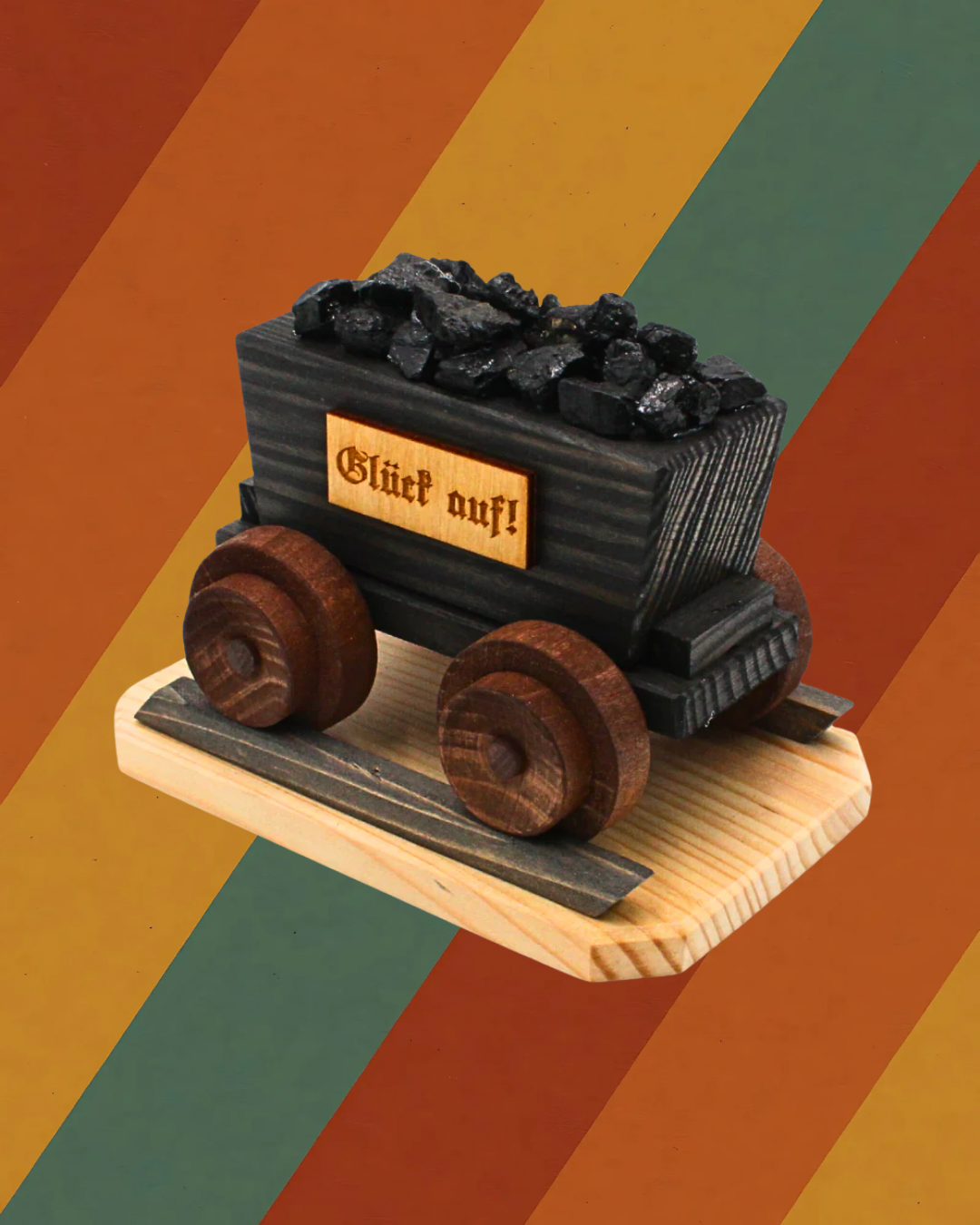 Diese einzigartige Räucherfigur erinnert an die harte Arbeit der Bergleute der DDR und speziell an die Tradition der Wismut- und Braunkohle-Regionen. Die detailreiche Lore aus Holz ist mit echter Kohle befüllt und trägt den traditionellen Bergmannsgruß „Glück auf!“.