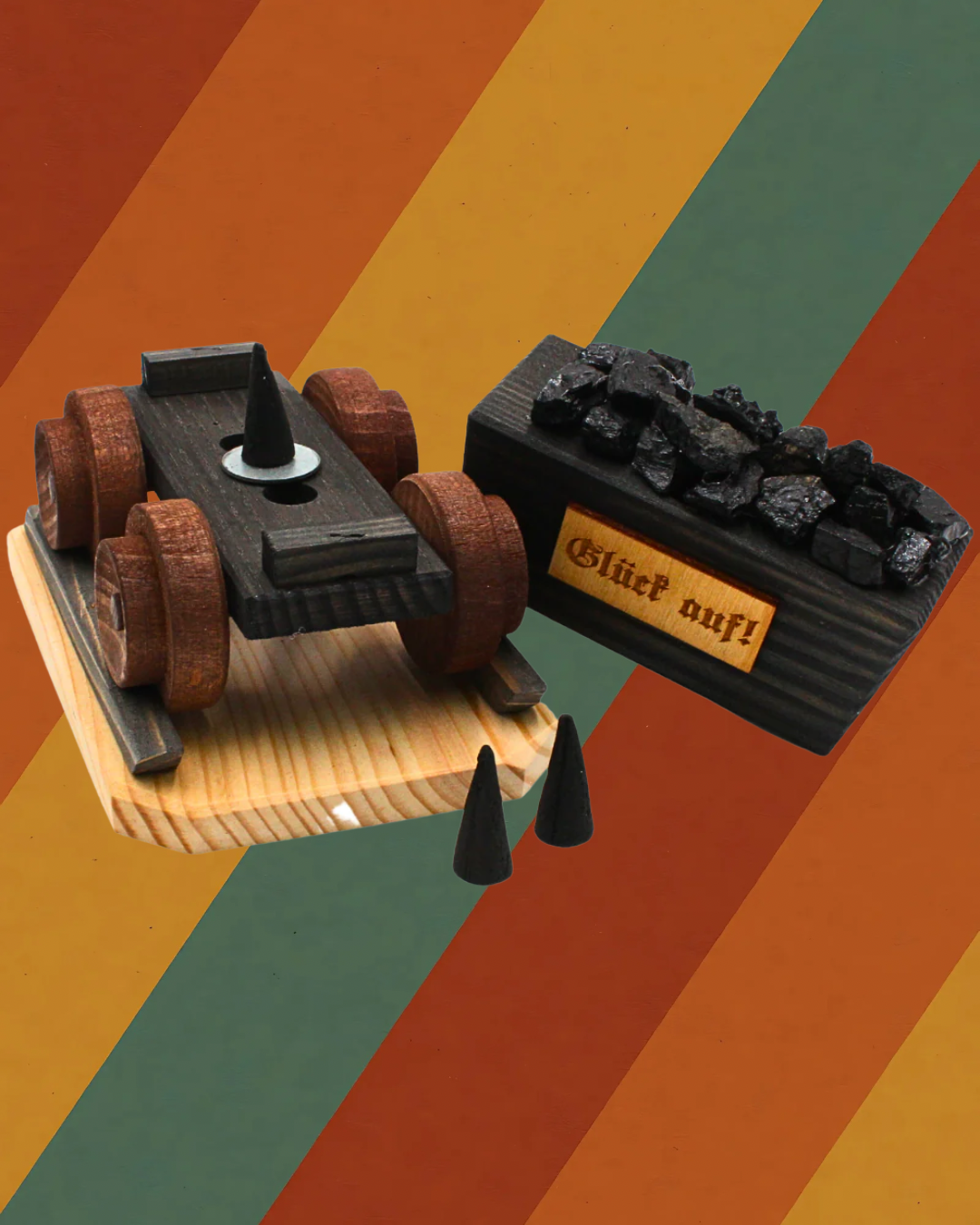 Ein echtes Stück ostdeutscher Handwerkskunst, das Symbolkraft und Geschichte verbindet. Beim Räuchern steigt der Duft aus dem Innenraum der Lore auf und erzeugt eine warme, nostalgische Atmosphäre.