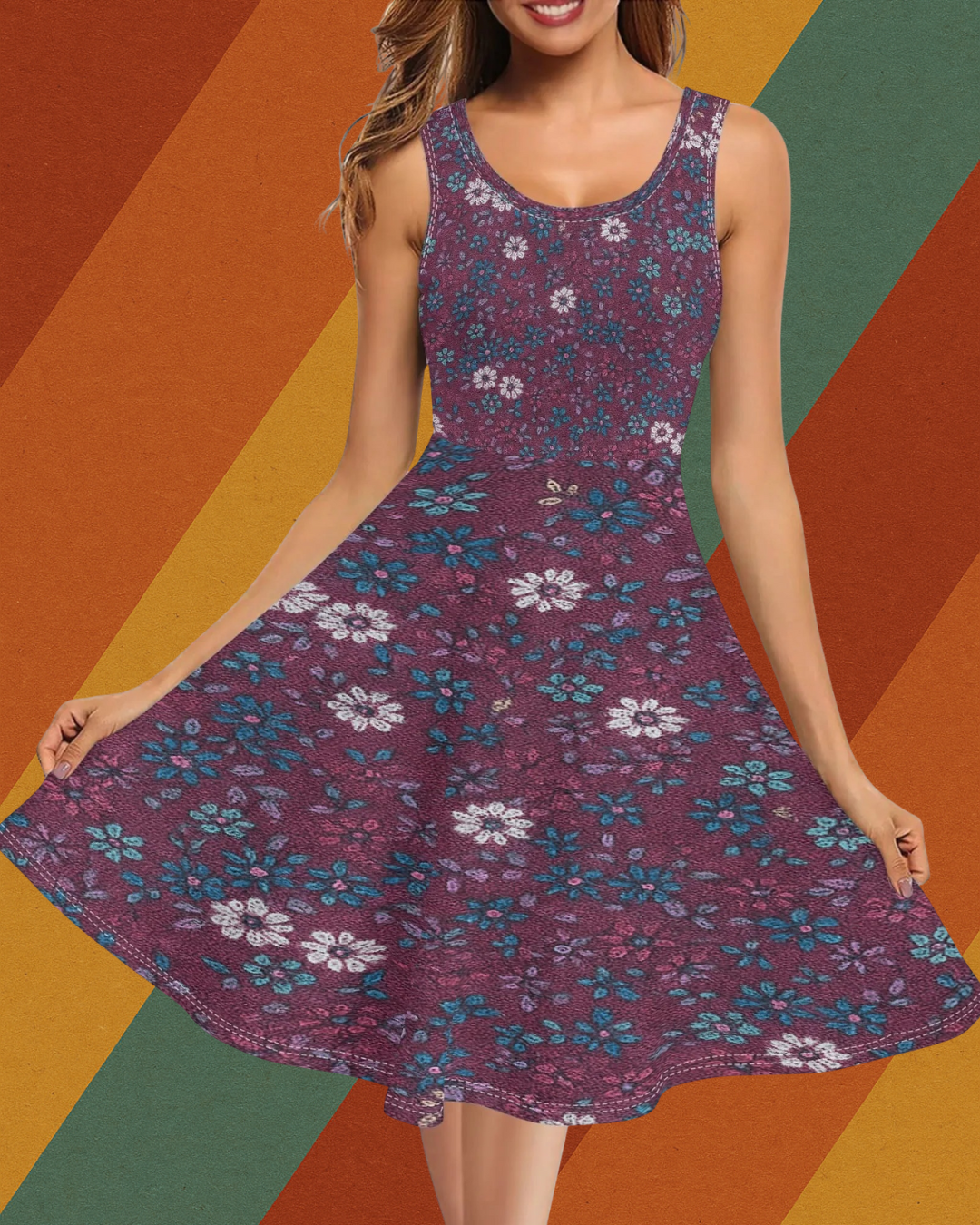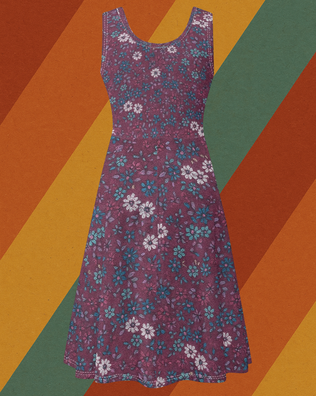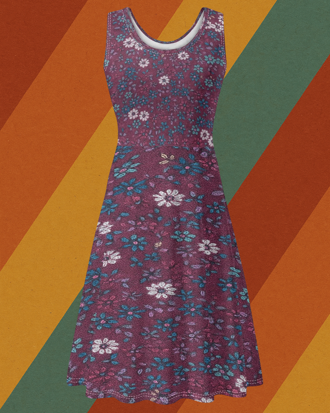 Ein Hauch von Sommergarten und Ostalgie: Dieses ärmellose A-Linien-Kleid kombiniert ein florales DDR-Muster mit moderner Bequemlichkeit. Luftig, leicht und mit versteckten Taschen – genau das Richtige für den Alltag und besondere Momente.