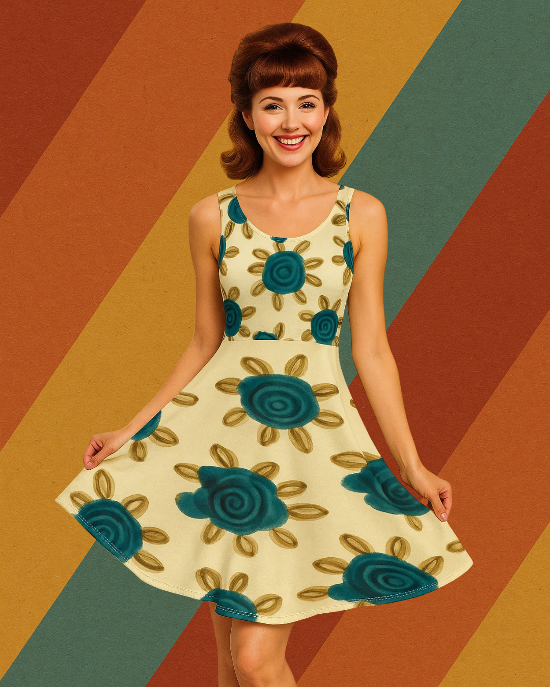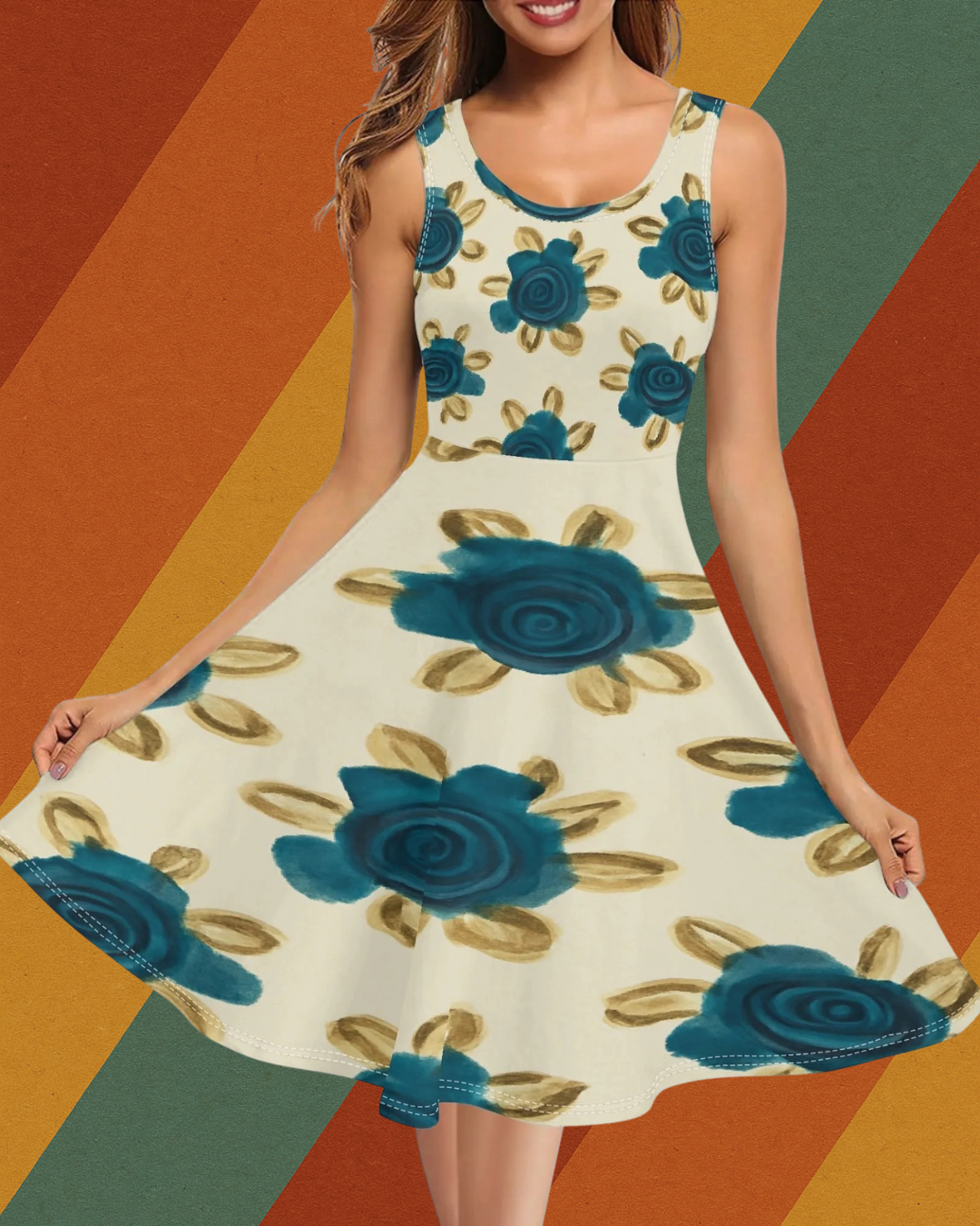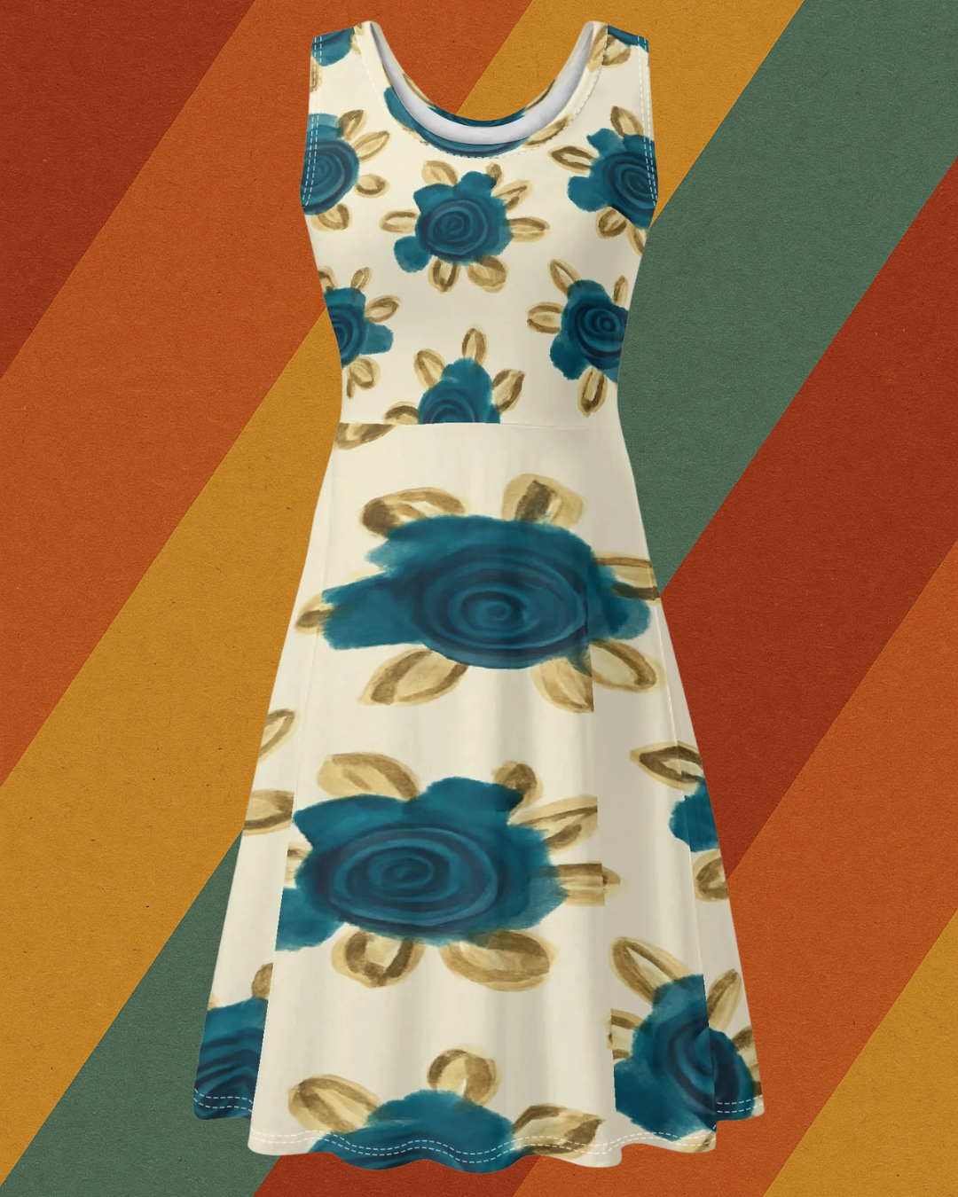 Ein Kleid wie aus einem Ost-Sommertraum: Blütenmuster, schwingender Schnitt, Funktionalität mit Charme. Dieses ärmellose Kleid im klassischen A-Linien-Stil ist mehr als nur ein Outfit – es ist eine Hommage an die Eleganz vergangener Zeiten. Und ja, es hat Taschen!