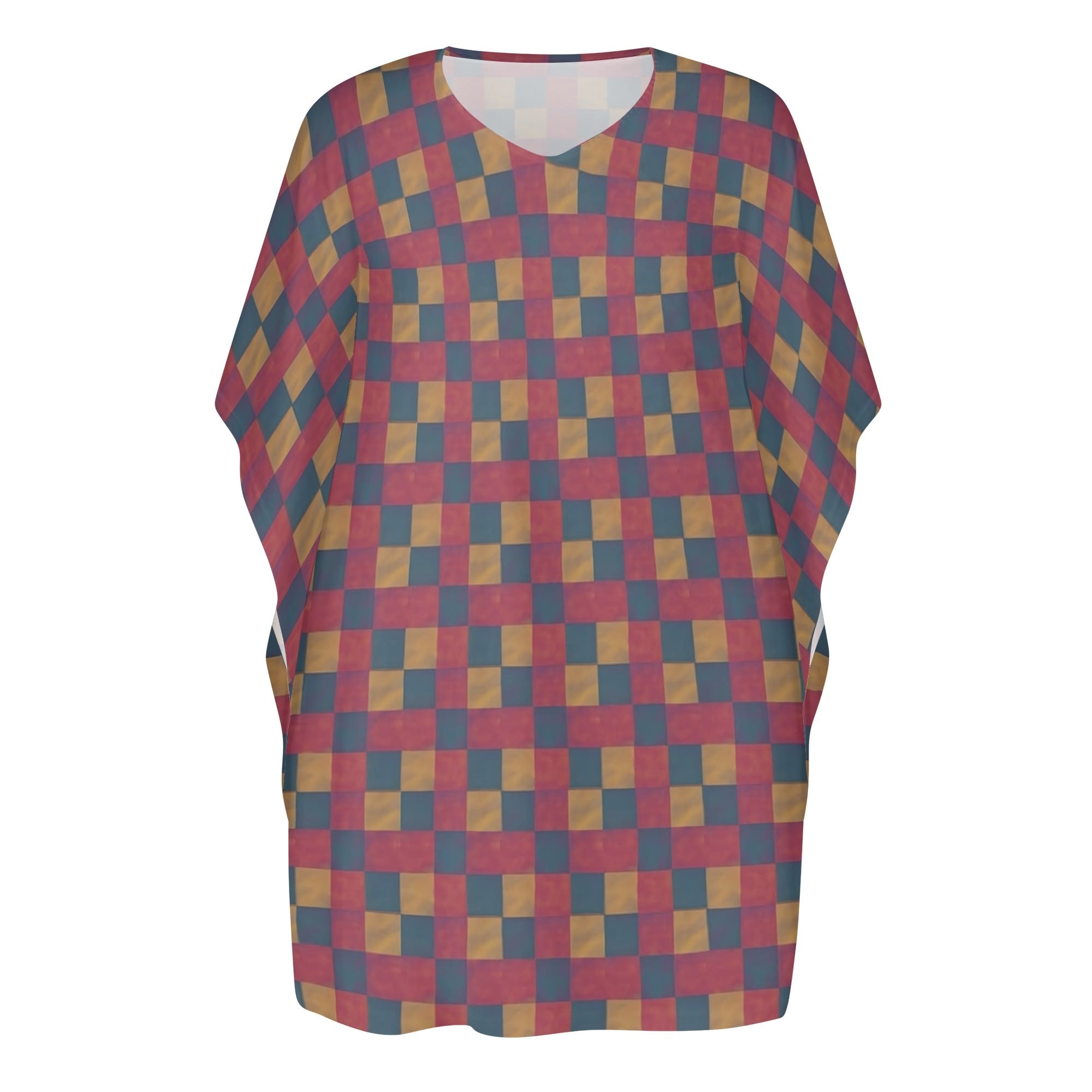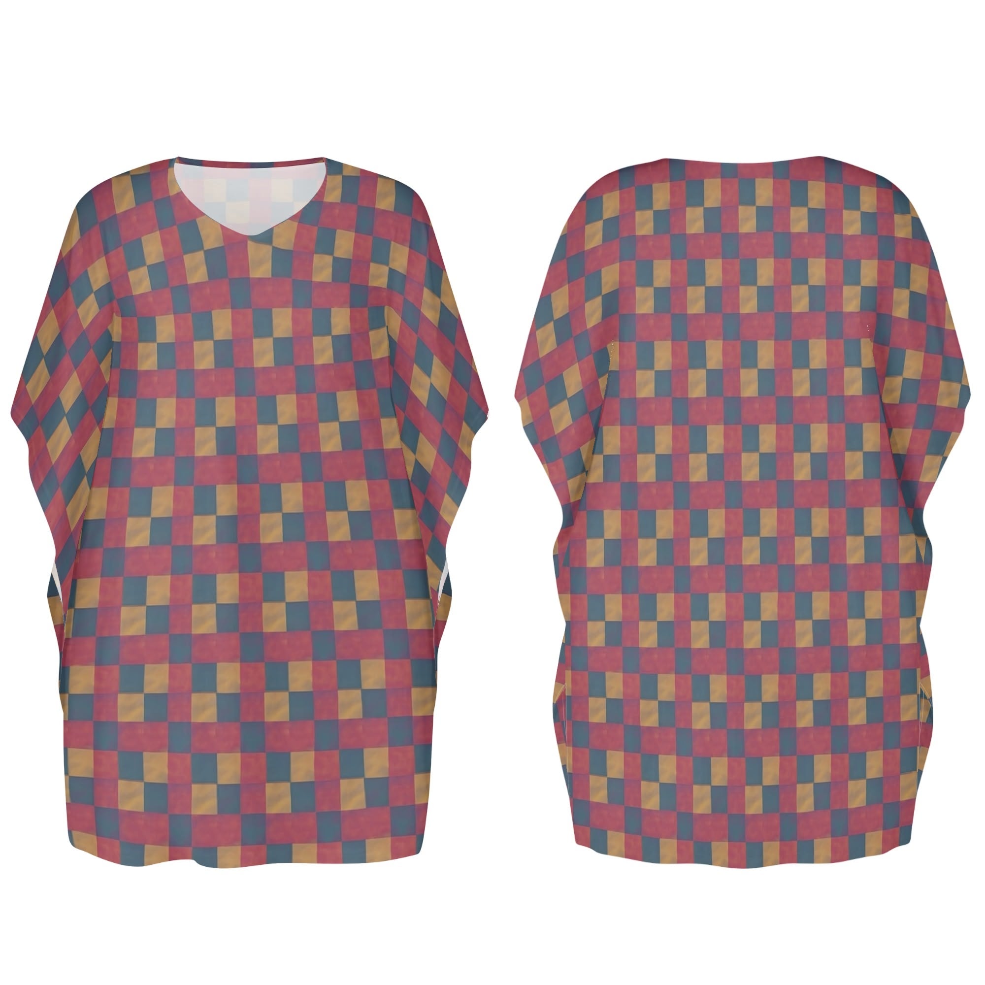 Ob du gerade den „Kaffeeklatsch“ vorbereitest oder den Briefkasten im Plattenbau aufsuchst – dieses Kleid ist dein treuer Begleiter. Mit seinem klassischen V-Ausschnitt, dem weiten Schnitt und dem typischen DDR-Kachelmuster in Senf, Rostrot und Petrol wirkt es wie direkt aus dem Intershop geholt.